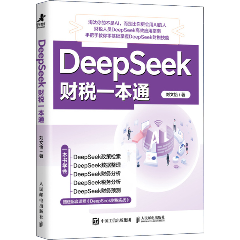 一本AI效率手册,手把手教财税人员零基础掌握DeepSeek,利用工具进行政策检索、数据整理、财务分析、税务分析、财务预测,随书赠送配套视频课程。